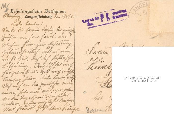 43510564 alte Postkarte Langensteinbach Karlsbad Erholungsheim Bethanien postalisch gelaufen Erhaltung siehe scans [FriedD77] KatCode: 11110008215096
