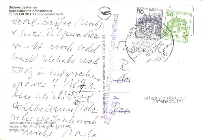 71993336 alte Postkarte Langensteinbach Karlsbad Fliegeraufnahme Reha-Krankenhaus postalisch gelaufen Erhaltung siehe scans KatCode: 11110008215096