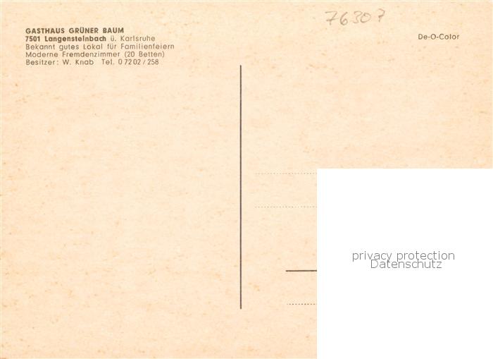 73855388 Langensteinbach Karlsbad Gasthaus Gruener Baum Kirche postalisch nicht gelaufen Erhaltung siehe scans [FriedD77] KatCode: 11110008215096