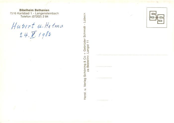 73938567 Langensteinbach Karlsbad Karlsruhe BW Bibelheim Bethanien postalisch nicht gelaufen Erhaltung siehe scans [WerneD78] KatCode: 11110008215096