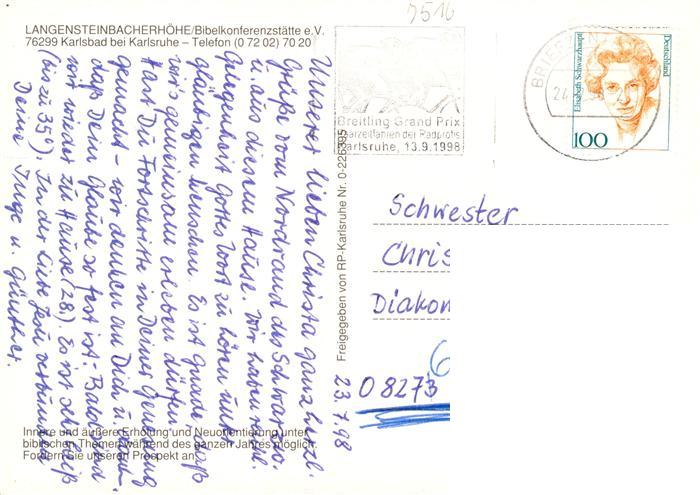 73938551 alte Postkarte Langensteinbach Karlsbad Karlsruhe BW Bibelkonferenzstaette Fliegeraufnahme postalisch gelaufen Erhaltung siehe scans [WerneD78] KatCode: 11110008215096