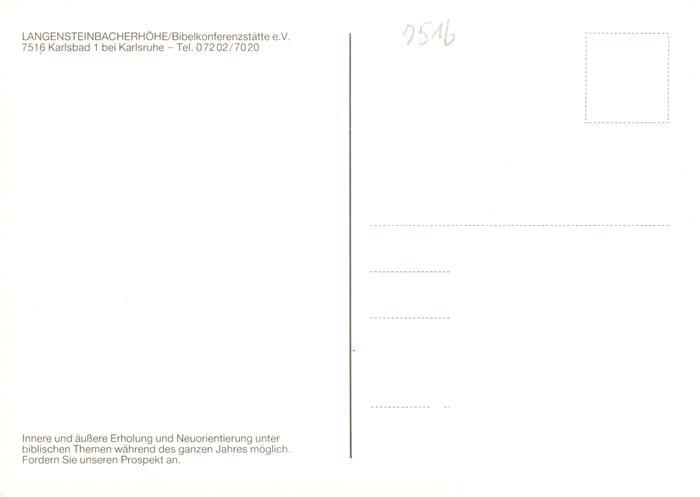 73938274 Langensteinbach Karlsbad Karlsruhe BW Bibelkonferenzstaette Saal postalisch nicht gelaufen Erhaltung siehe scans [WerneD78] KatCode: 11110008215096