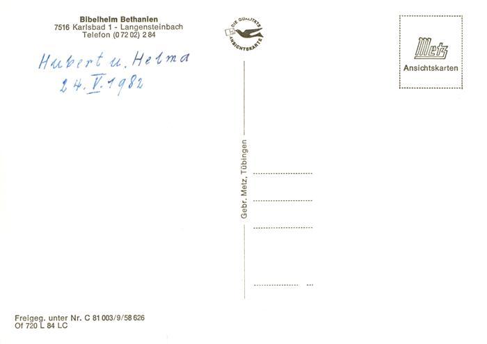 73938568 Langensteinbach Karlsbad Karlsruhe BW Fliegeraufnahme mit Bibelheim Bethanien postalisch nicht gelaufen Erhaltung siehe scans [WerneD78] KatCode: 11110008215096