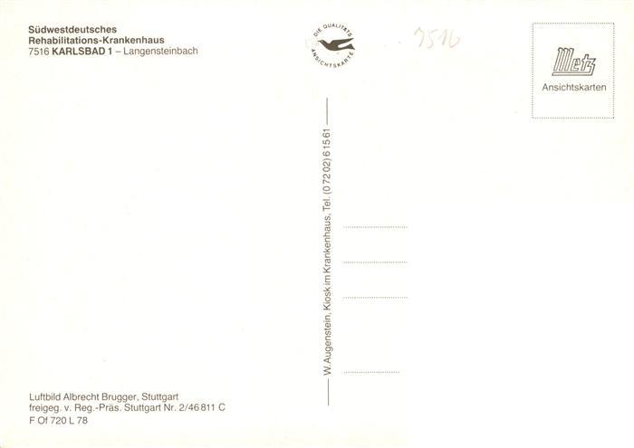 73938265 Langensteinbach Karlsbad Karlsruhe BW Fliegeraufnahme mit Suedwestdeutsches Reha Krankenhaus postalisch nicht gelaufen Erhaltung siehe scans [WerneD78] KatCode: 11110008215096
