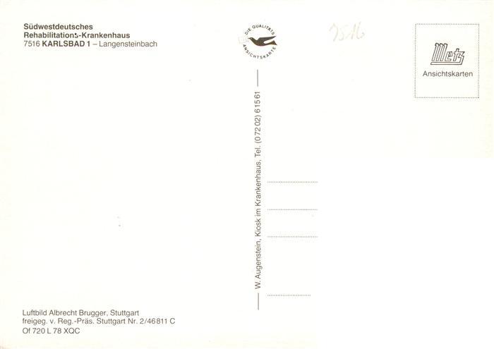 73938264 Langensteinbach Karlsbad Karlsruhe BW Fliegeraufnahme mit Suedwestdeutsches Reha Krankenhaus postalisch nicht gelaufen Erhaltung siehe scans [WerneD78] KatCode: 11110008215096