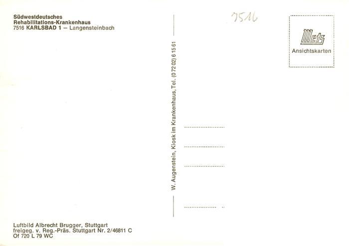 73938261 Langensteinbach Karlsbad Karlsruhe BW Fliegeraufnahme mit Suedwestdeutsches Reha Krankenhaus postalisch nicht gelaufen Erhaltung siehe scans [WerneD78] KatCode: 11110008215096