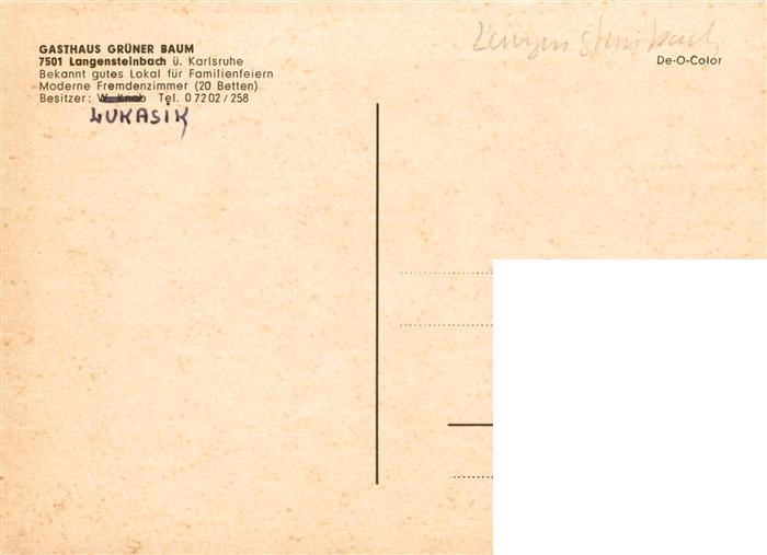 73938273 Langensteinbach Karlsbad Karlsruhe BW Gasthaus Gruener Baum Kirche postalisch nicht gelaufen Erhaltung siehe scans [WerneD78] KatCode: 11110008215096