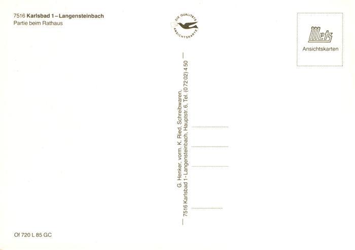 73938562 Langensteinbach Karlsbad Karlsruhe BW Partie am Rathaus postalisch nicht gelaufen Erhaltung siehe scans [WerneD78] KatCode: 11110008215096