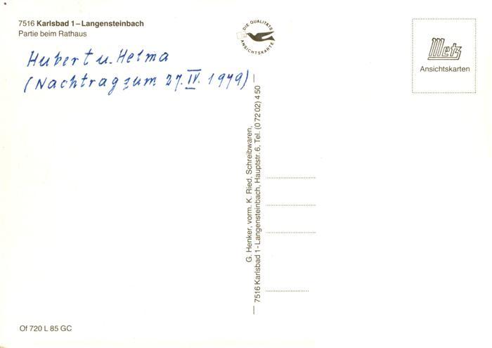 73938533 Langensteinbach Karlsbad Karlsruhe BW Winterpartie beim Rathaus postalisch nicht gelaufen Erhaltung siehe scans [WerneD78] KatCode: 11110008215096