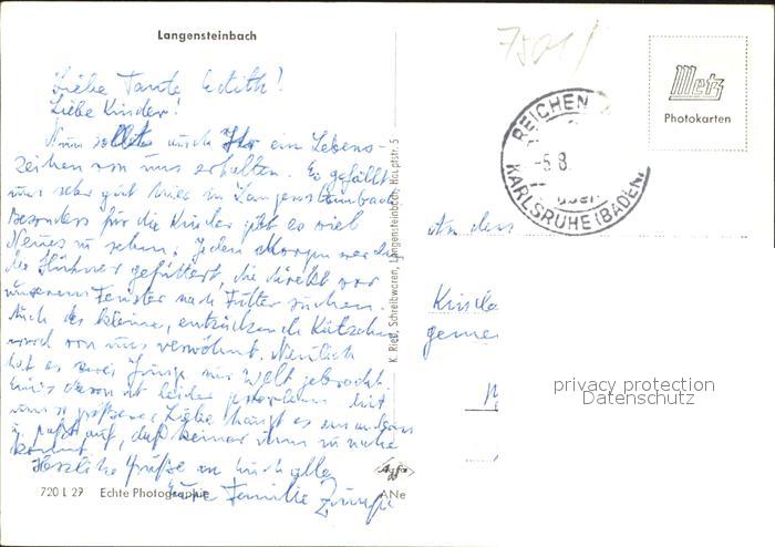 31731455 alte Postkarte Langensteinbach Karlsbad Kirche postalisch gelaufen Erhaltung siehe scans KatCode: 11110008215096