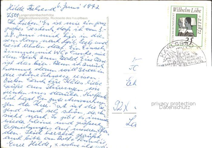 72305779 alte Postkarte Langensteinbach Karlsbad Langensteinbacherhoehe Bibelkonferenzstaette postalisch gelaufen Erhaltung siehe scans KatCode: 11110008215096