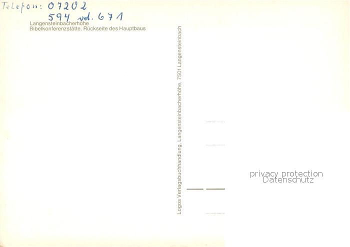 73719954 Langensteinbach Karlsbad Langensteinbacherhoehe Bibelkonferenzstaette Hauptbau Rueckseite postalisch nicht gelaufen Erhaltung siehe scans [FriedD77] KatCode: 11110008215096