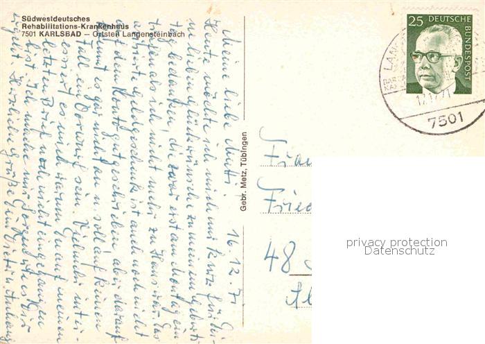 72707944 alte Postkarte Langensteinbach Karlsbad Suedwestdt Reha Krankenhaus postalisch gelaufen Erhaltung siehe scans [WerneD78] KatCode: 11110008215096