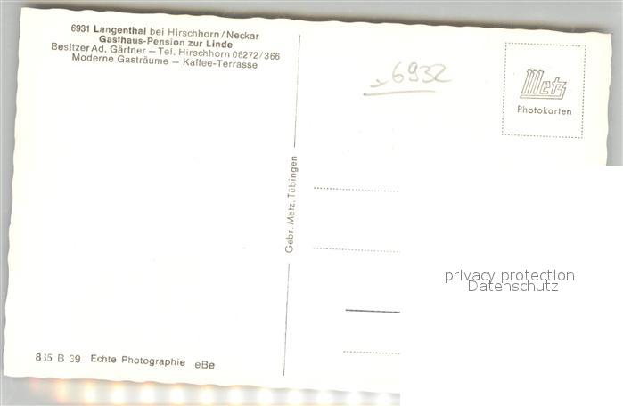 42931648 Langenthal Odenwald Gasthof Pension zur Linde postalisch nicht gelaufen Erhaltung siehe scans [AndreD76] KatCode: 11110006431012