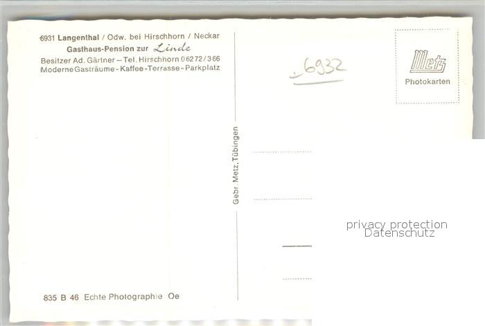 42931644 Langenthal Odenwald Gasthof Pension zur Linde postalisch nicht gelaufen Erhaltung siehe scans [AndreD76] KatCode: 11110006431012