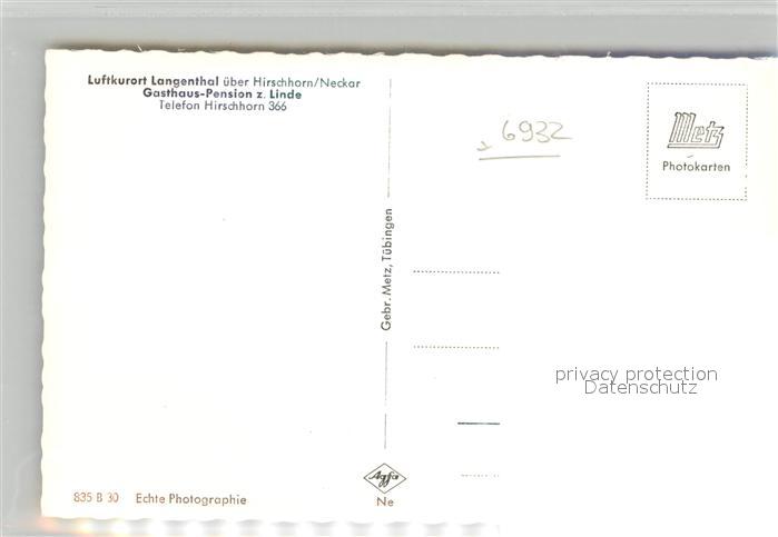 42931654 Langenthal Odenwald Gasthof Pension zur Linde postalisch nicht gelaufen Erhaltung siehe scans [AndreD76] KatCode: 11110006431012