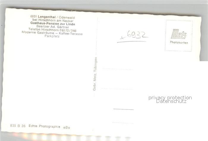42932810 Langenthal Odenwald Gasthof Pension zur Linde Terrasse postalisch nicht gelaufen Erhaltung siehe scans [AndreD76] KatCode: 11110006431012