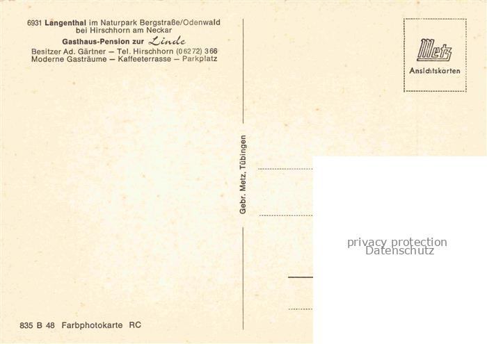 74137572 Langenthal Odenwald Hirschhorn Neckar Bergstrasse Panorama postalisch nicht gelaufen Erhaltung siehe scans [WerneD78] KatCode: 11110006431012