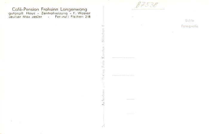 73949167 Langenwang Fischen Allgaeu Café Pension Frohsinn Panorama Alpen postalisch nicht gelaufen Erhaltung siehe scans [FriedD77] KatCode: 11110009780121