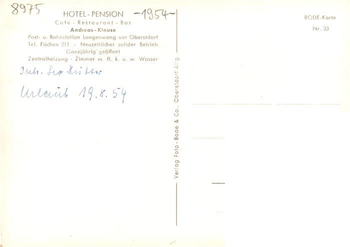 73894060 Langenwang Fischen Allgaeu Hotel Pension Cafe Restaurant Bar Andreas Klause Gastraum Bar Panorama postalisch nicht gelaufen Erhaltung siehe scans [WerneD78] KatCode: 11110009780121