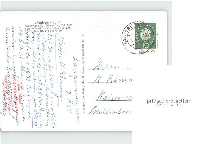 72331663 alte Postkarte Langenwang Fischen Andreasklause Hotel Pension postalisch gelaufen Erhaltung siehe scans KatCode: 11110009780121