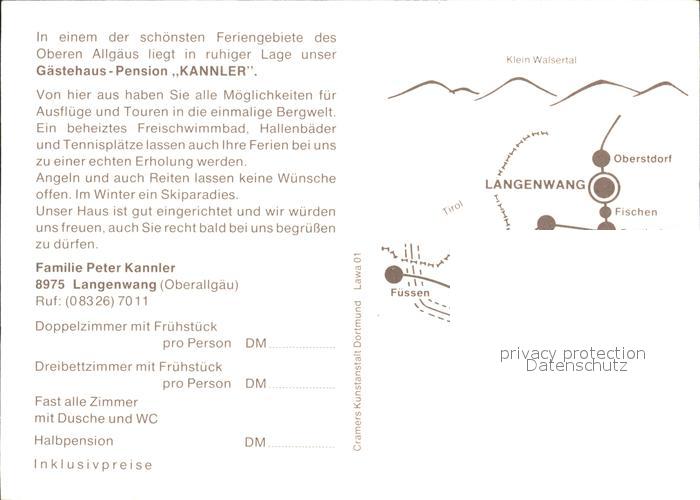 72279904 Langenwang Fischen Gaestehaus Pension Kannler postalisch nicht gelaufen Werbekarte (keine Postkarte) Erhaltung siehe scans KatCode: 11110009780121