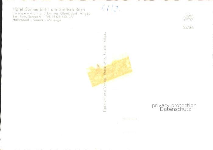 71999777 Langenwang Fischen Hotel Pension Sonnenbichl postalisch nicht gelaufen Erhaltung siehe scans KatCode: 11110009780121