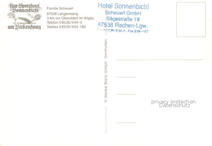 72962721 Langenwang Fischen Hotel Sonnenbichl postalisch nicht gelaufen Erhaltung siehe scans [NatalD47] KatCode: 11110009780121