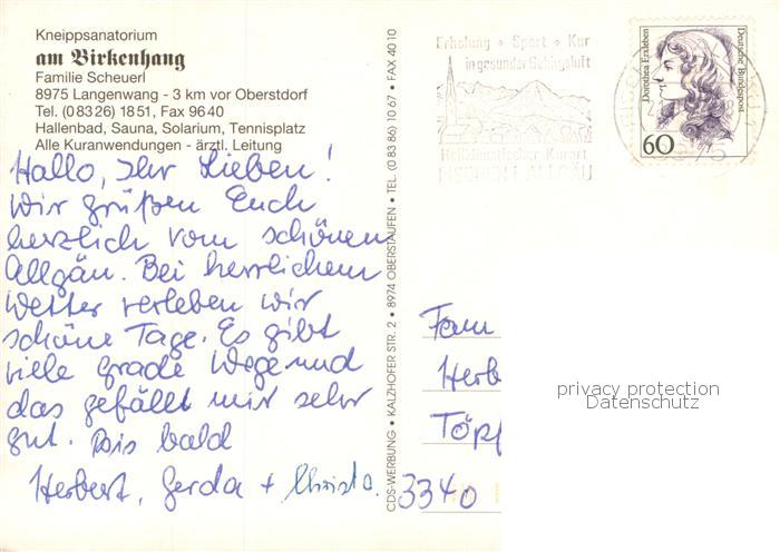 73785686 alte Postkarte Langenwang Fischen Kneippsanatorium am Birkenhang postalisch gelaufen Erhaltung siehe scans [WerneD78] KatCode: 11110009780121