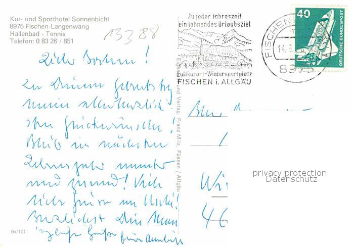 72863483 alte Postkarte Langenwang Fischen Kur- Sporthotel Sonnenbichl postalisch gelaufen Erhaltung siehe scans [NatalD47] KatCode: 11110009780121