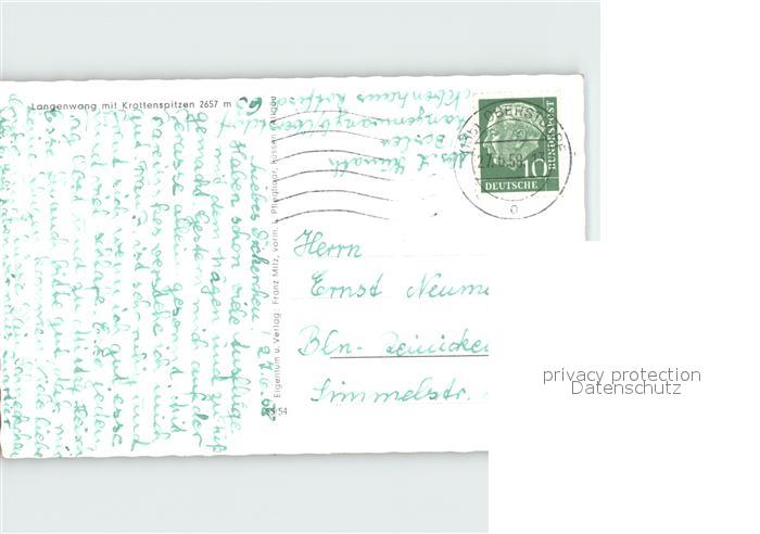 72198957 alte Postkarte Langenwang Fischen mit Krottenspitzen Allgaeuer Alpen postalisch gelaufen Erhaltung siehe scans KatCode: 11110009780121