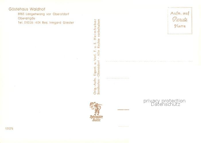 73666333 Langenwang Fischen Oberstdorf G?stehaus Waldhof postalisch nicht gelaufen Erhaltung siehe scans [LiesaD40] KatCode: 11110009780121
