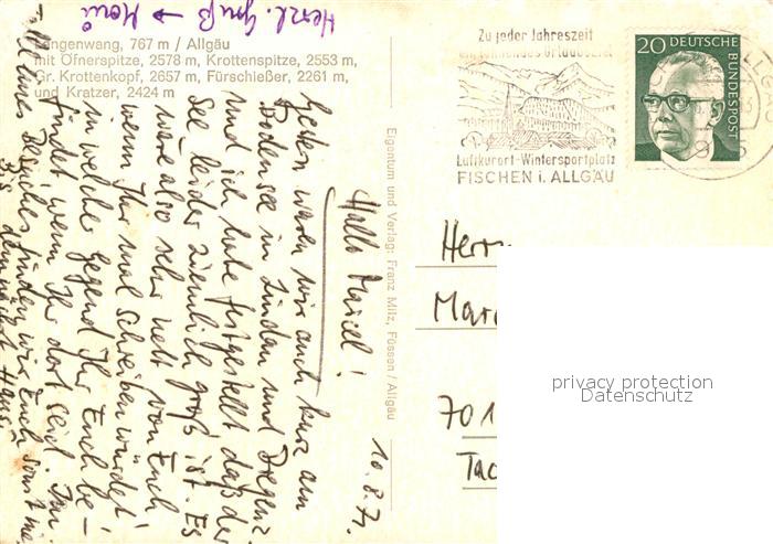 72970296 alte Postkarte Langenwang Fischen Panorama Allgaeuer Alpen postalisch gelaufen Erhaltung siehe scans [FriedD77] KatCode: 11110009780121