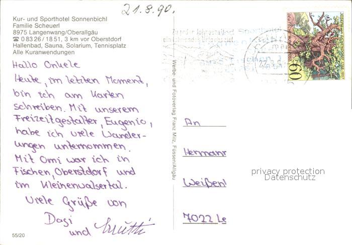72263450 alte Postkarte Langenwang Fischen Sporthotel Sonnenblick postalisch gelaufen Erhaltung siehe scans KatCode: 11110009780121