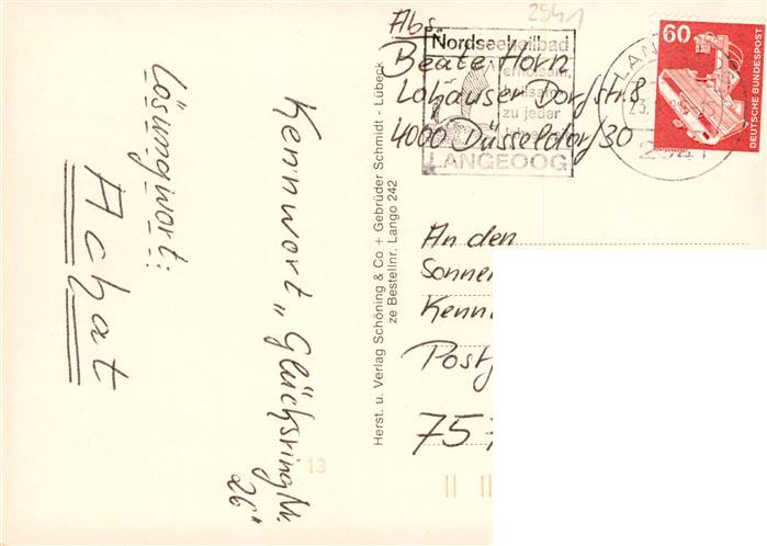 73937159 alte Postkarte Langeoog Nordseebad Badestrand MS Langeoog Fliegeraufnahmen Wasserturm Sonnenhof Lale Andersen postalisch gelaufen Erhaltung siehe scans [WerneD78] KatCode: 11110003462007