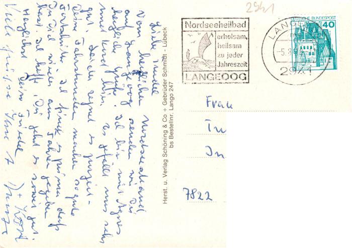 73934540 alte Postkarte Langeoog Nordseebad Duenen Inselbahn Abendstimmung Wasserturm Ortsansicht Insel Langeoog Wangerooge Fliegeraufnahme Lili Marleen Sonnenhof Lili Marleen postalisch gelaufen Erhaltung siehe scans [WerneD78] KatCode: 11110003462007