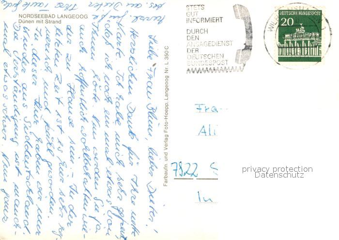 73004101 alte Postkarte Langeoog Nordseebad Duenen mit Strand postalisch gelaufen Erhaltung siehe scans [WerneD78] KatCode: 11110003462007