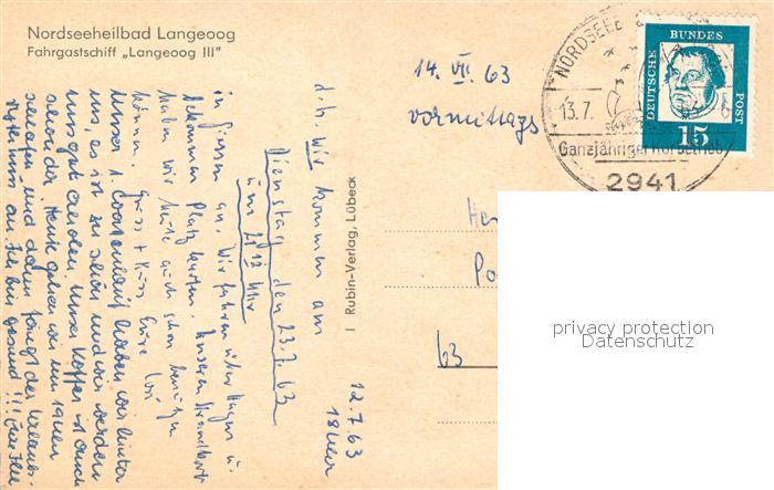 33597650 alte Postkarte Langeoog Nordseebad Fahrgastschiff Langeoog III postalisch gelaufen Erhaltung siehe scans [WerneD78] KatCode: 11110003462007