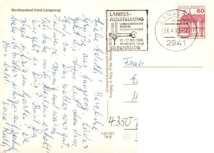 73914102 alte Postkarte Langeoog Nordseebad Fliegeraufnahme postalisch gelaufen Erhaltung siehe scans [WerneD78] KatCode: 11110003462007