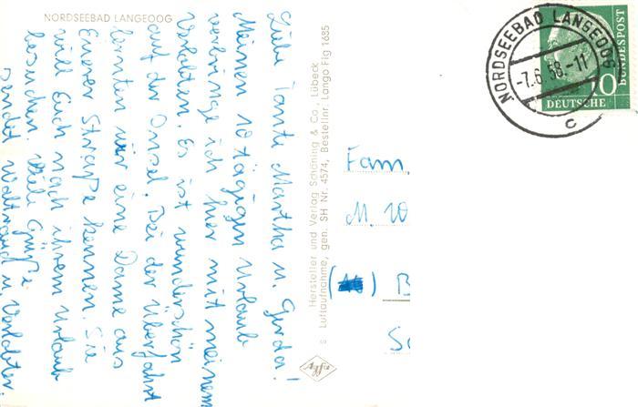 73904721 alte Postkarte Langeoog Nordseebad Fliegeraufnahme postalisch gelaufen Erhaltung siehe scans [FriedD77] KatCode: 11110003462007