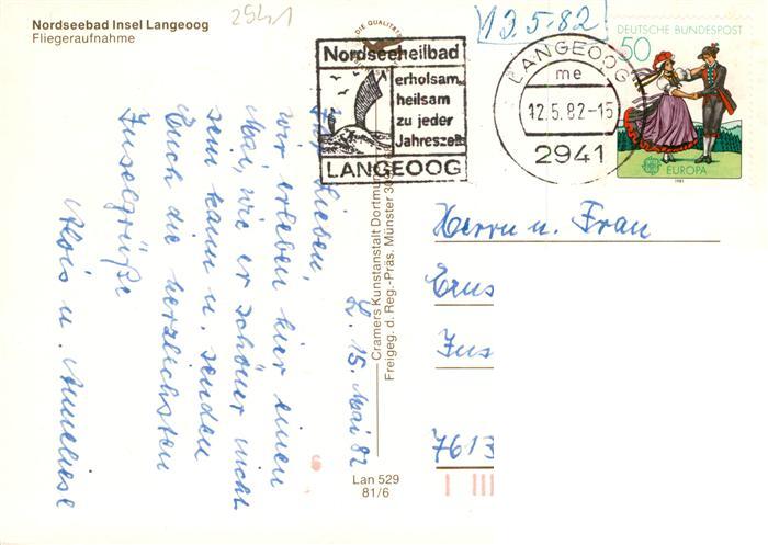 73937151 alte Postkarte Langeoog Nordseebad Fliegeraufnahme postalisch gelaufen Erhaltung siehe scans [WerneD78] KatCode: 11110003462007