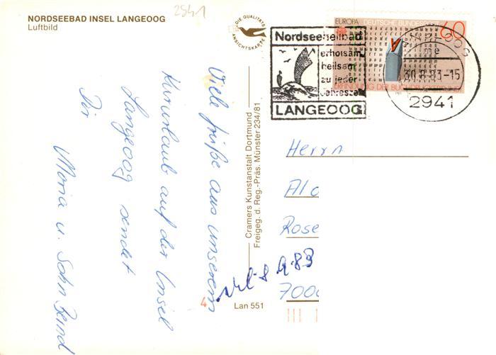 73937150 alte Postkarte Langeoog Nordseebad Fliegeraufnahme postalisch gelaufen Erhaltung siehe scans [WerneD78] KatCode: 11110003462007