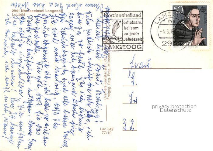 73111997 alte Postkarte Langeoog Nordseebad Fliegeraufnahme postalisch gelaufen Erhaltung siehe scans [NatalD47] KatCode: 11110003462007