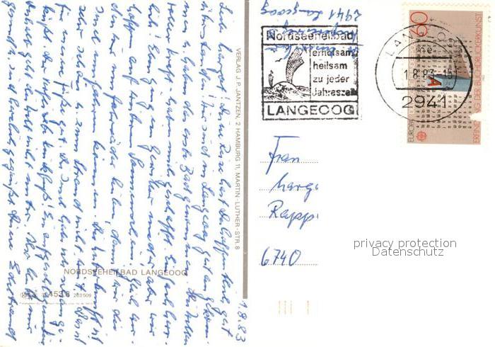 73081054 alte Postkarte Langeoog Nordseebad Fliegeraufnahme postalisch gelaufen Erhaltung siehe scans [FriedD77] KatCode: 11110003462007