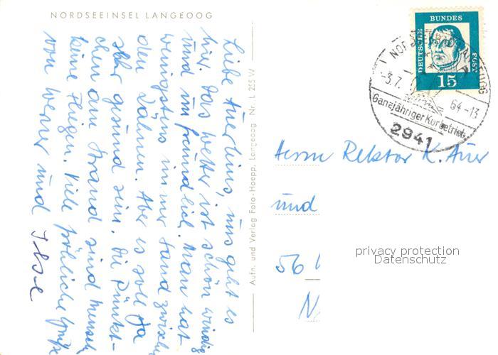 73045582 alte Postkarte Langeoog Nordseebad Fliegeraufnahme postalisch gelaufen Erhaltung siehe scans [KathaD81] KatCode: 11110003462007