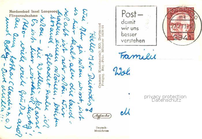 72856877 alte Postkarte Langeoog Nordseebad Fliegeraufnahme postalisch gelaufen Erhaltung siehe scans [AndreD76] KatCode: 11110003462007