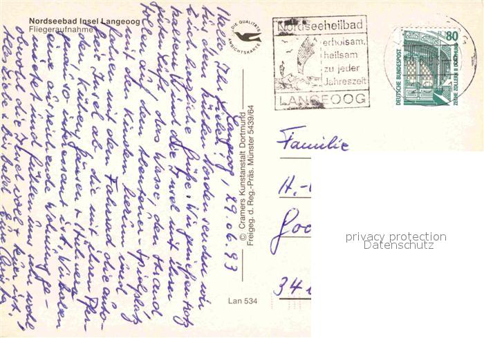 72850529 alte Postkarte Langeoog Nordseebad Fliegeraufnahme postalisch gelaufen Erhaltung siehe scans [LiesaD40] KatCode: 11110003462007