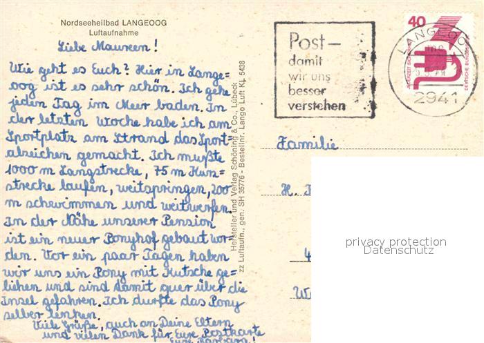 72840508 alte Postkarte Langeoog Nordseebad Fliegeraufnahme postalisch gelaufen Erhaltung siehe scans [FriedD77] KatCode: 11110003462007