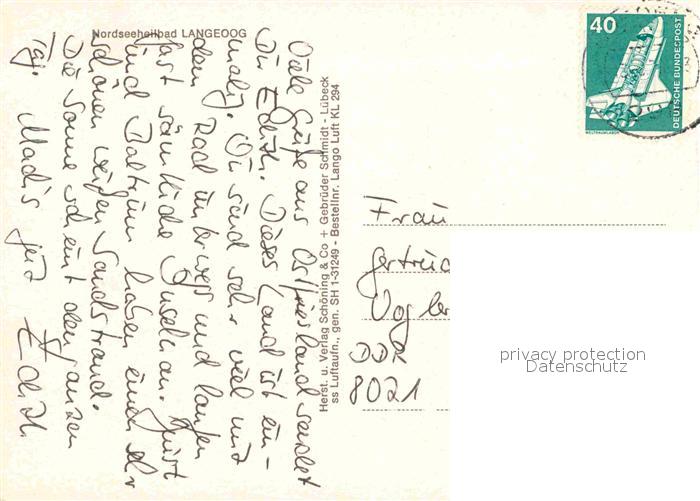 72833631 alte Postkarte Langeoog Nordseebad Fliegeraufnahme postalisch gelaufen Erhaltung siehe scans [FriedD77] KatCode: 11110003462007