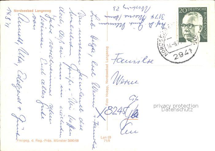 72370060 alte Postkarte Langeoog Nordseebad Fliegeraufnahme postalisch gelaufen Erhaltung siehe scans KatCode: 11110003462007
